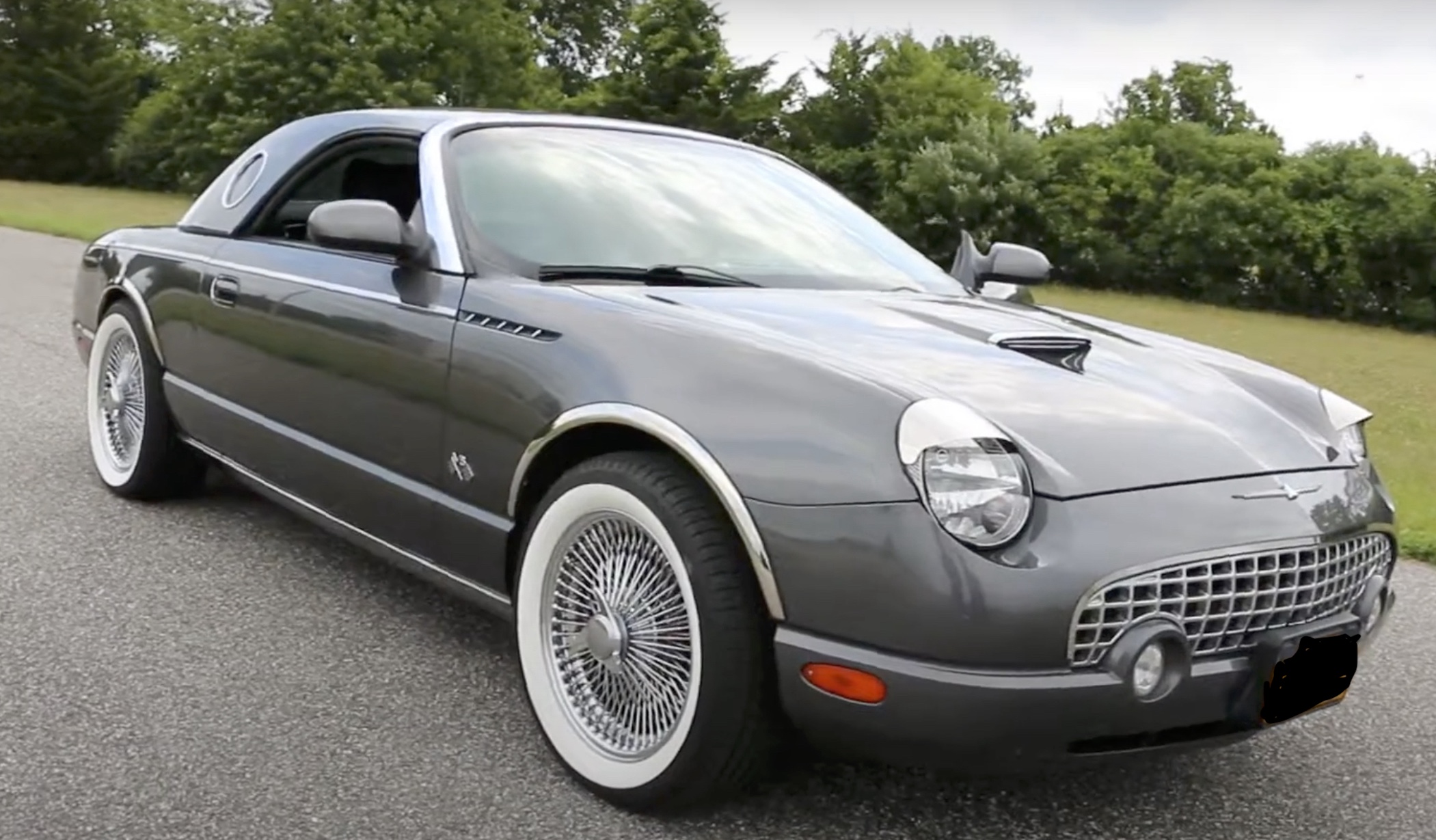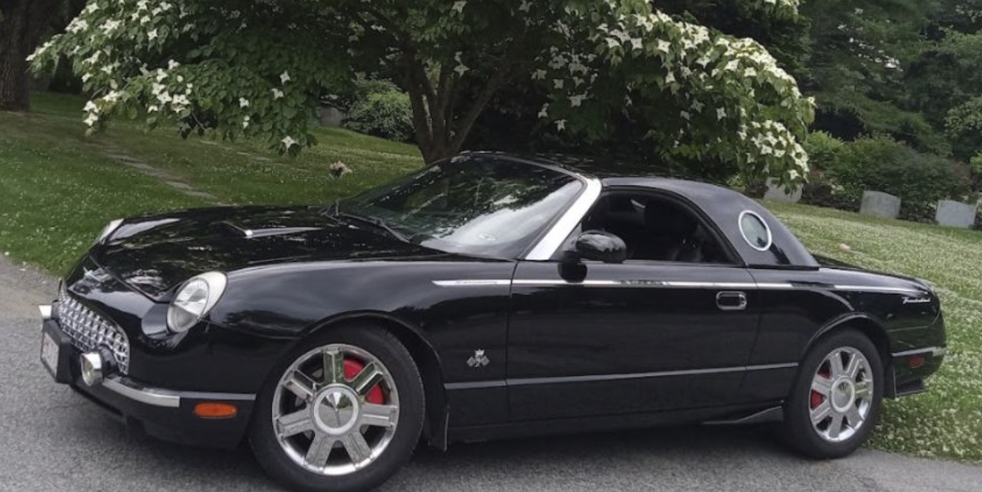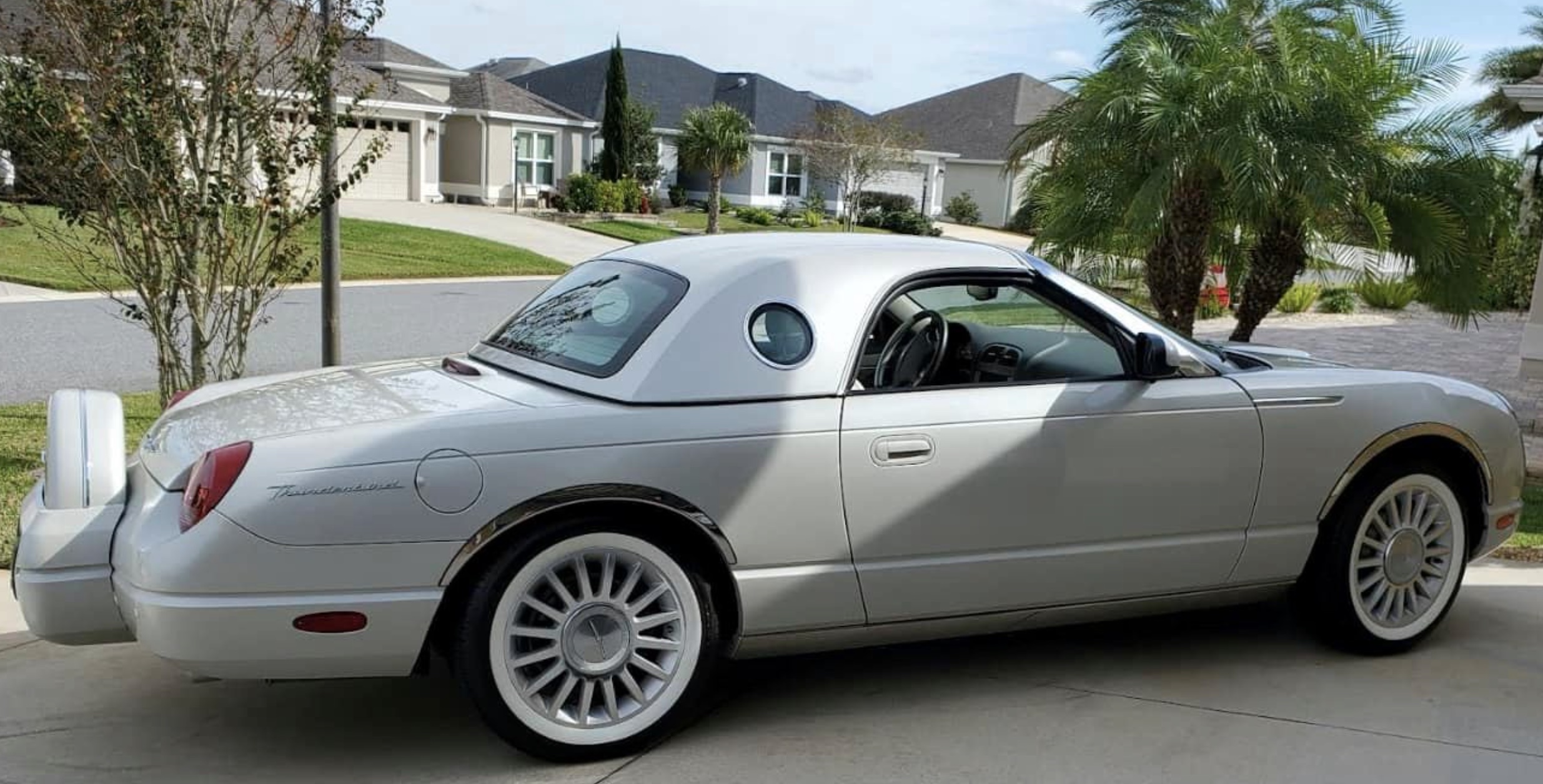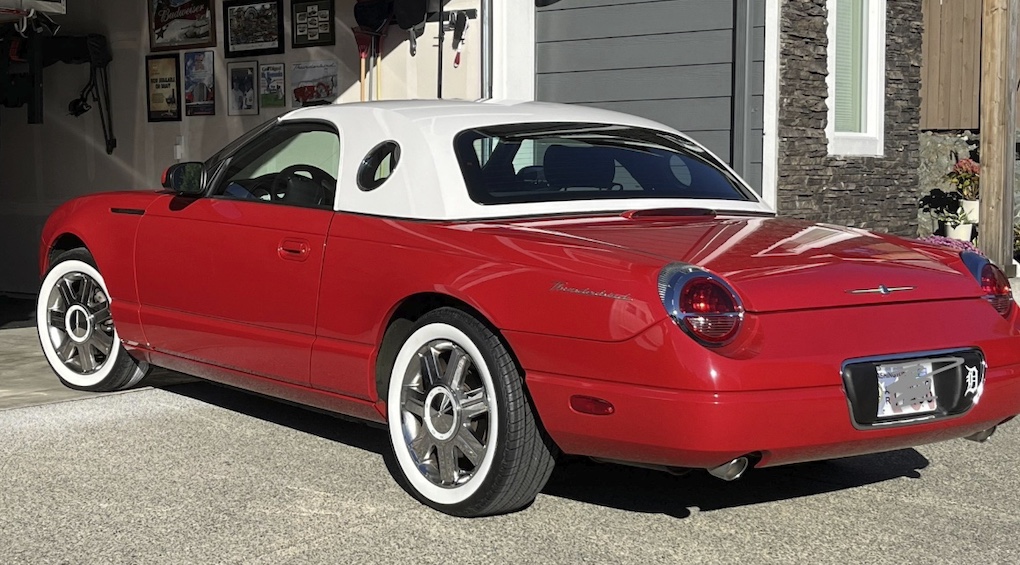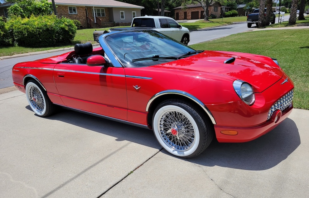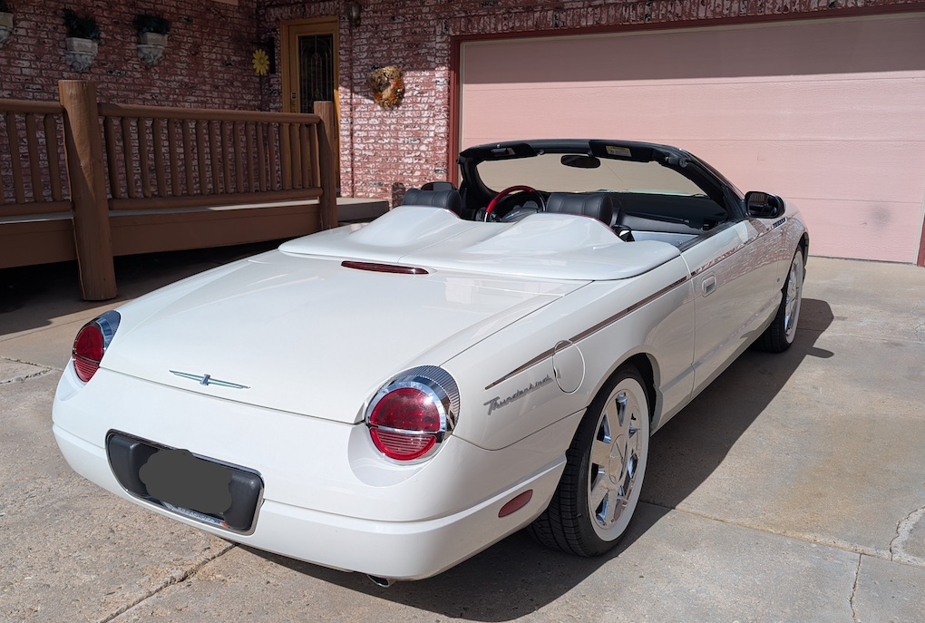 Rick Z. -Long Island, New York. – Rick’s 2005 ‘Medium Steel Blue’ Thunderbird features a custom ‘Light Sand’ hardtop and porthole decals.