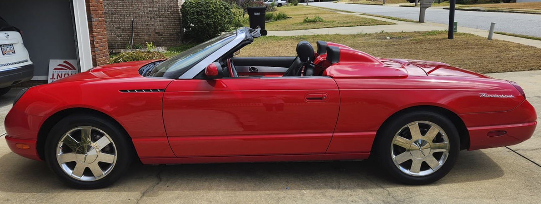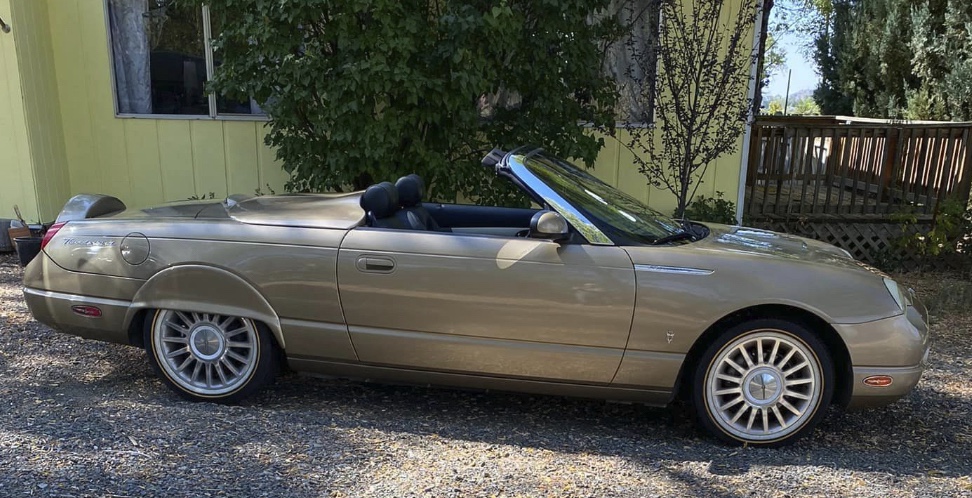 Klaus’ 2002 Inspiration Yellow Thunderbird features our ‘Roadster Style’ Tonneau Cover, Trunk Rack, Stainless Steel Side Accent Trim, Wheel Well Trim, and a racy custom paint scheme.